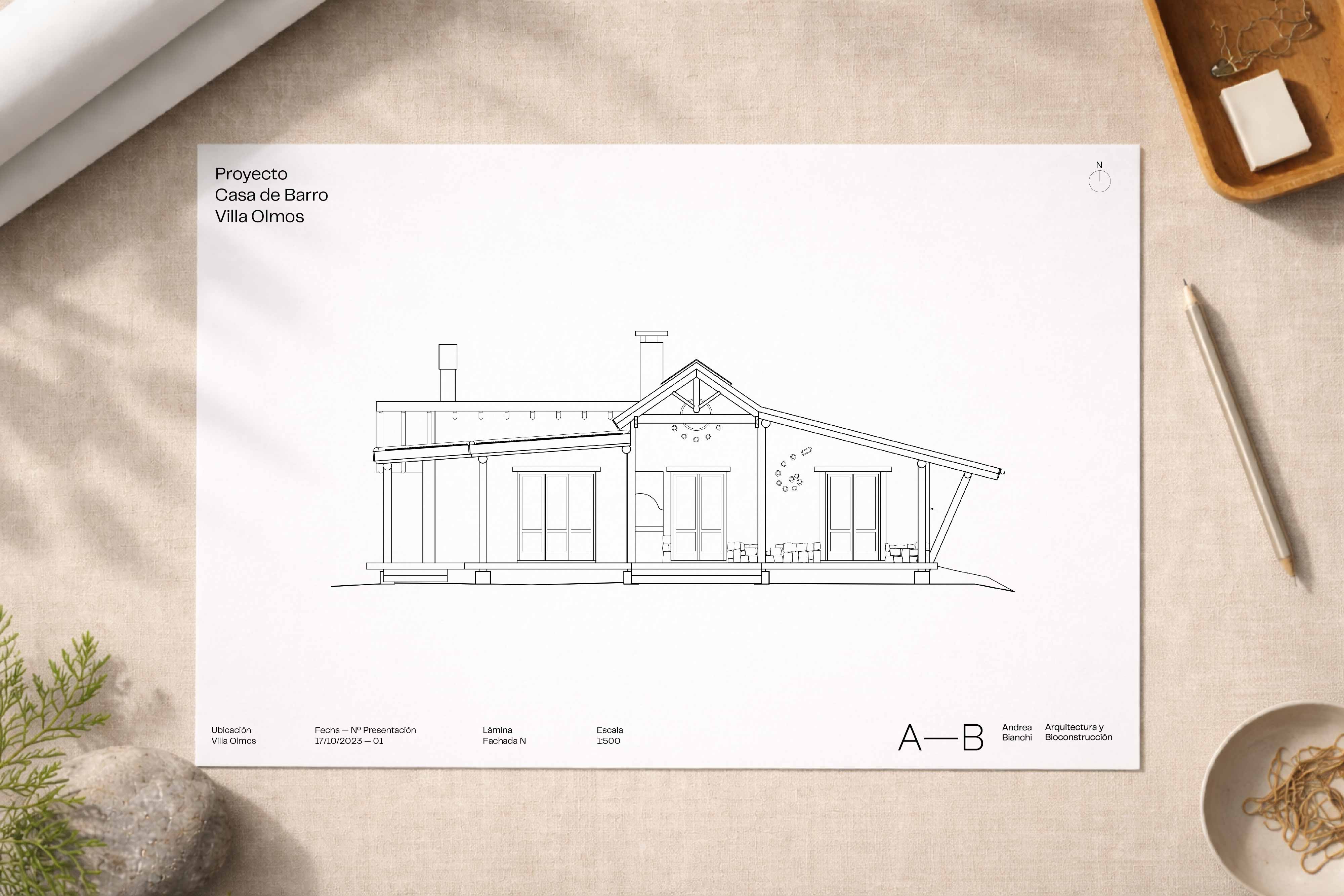 La marca se construyó a partir de una coincidencia significativa entre sus iniciales —AB— y dos conceptos centrales de su práctica: arquitectura y bioconstrucción. A su vez, el concepto se amplía al proceso que Andrea propone a sus clientes: un acompañamiento integral en la creación de sus viviendas, desde la idea inicial hasta su concreción. En otras palabras, un recorrido completo desde A hasta B.