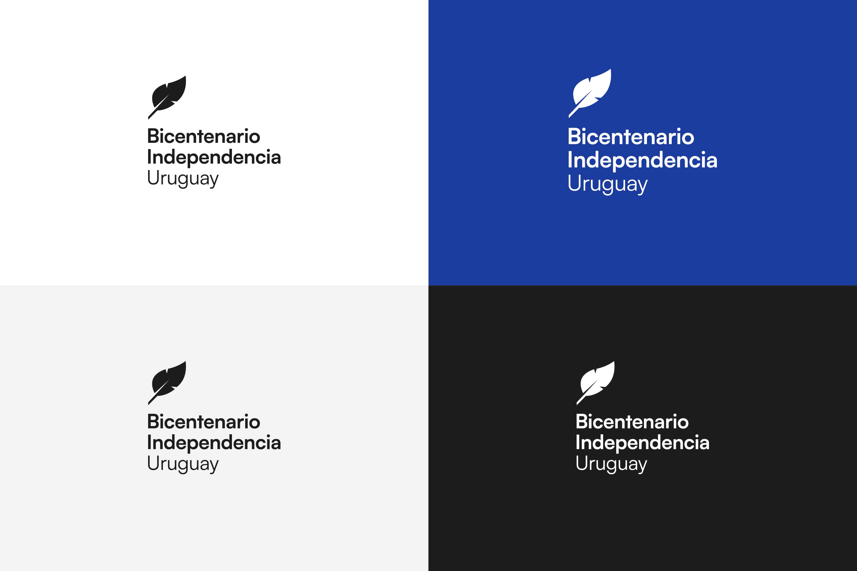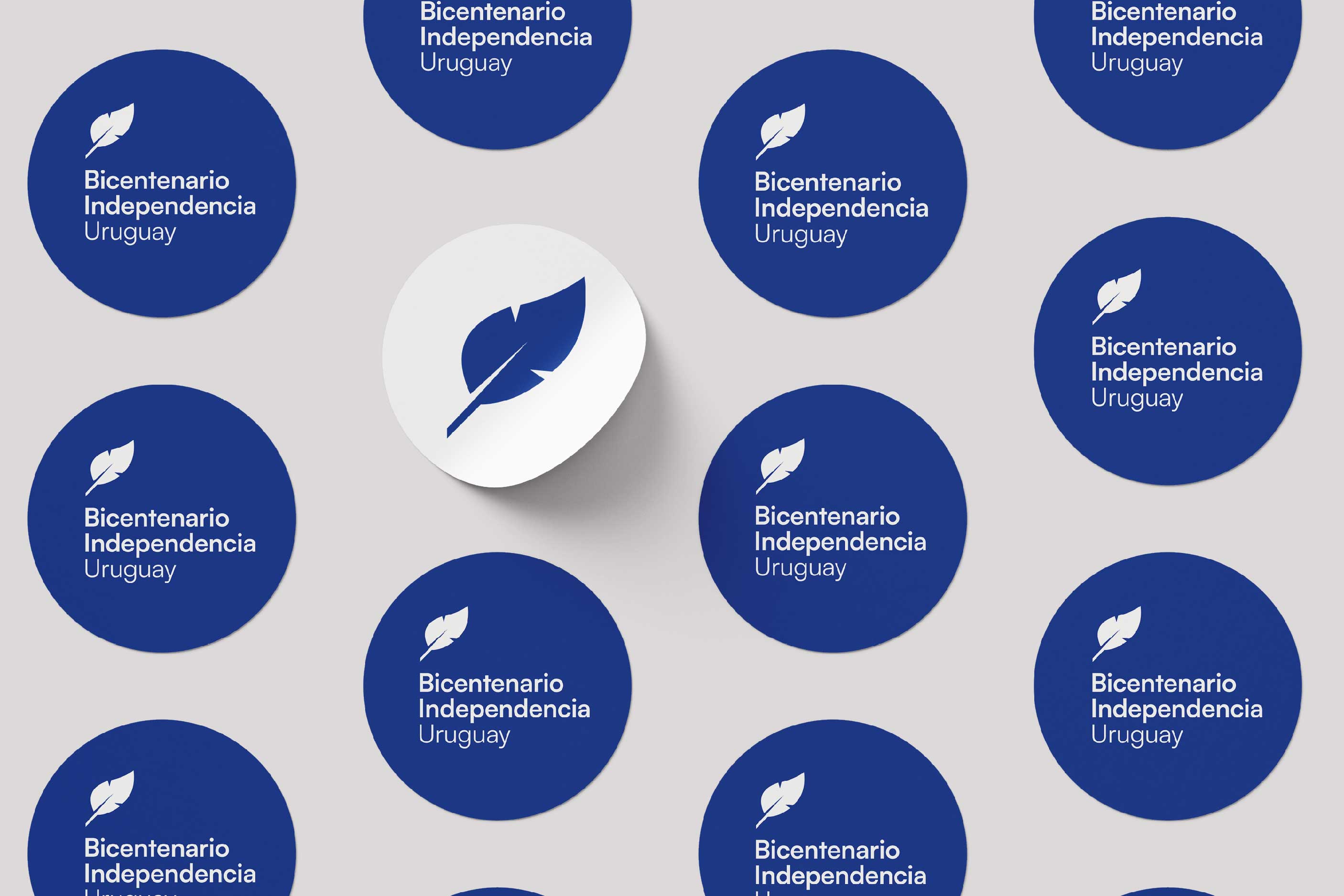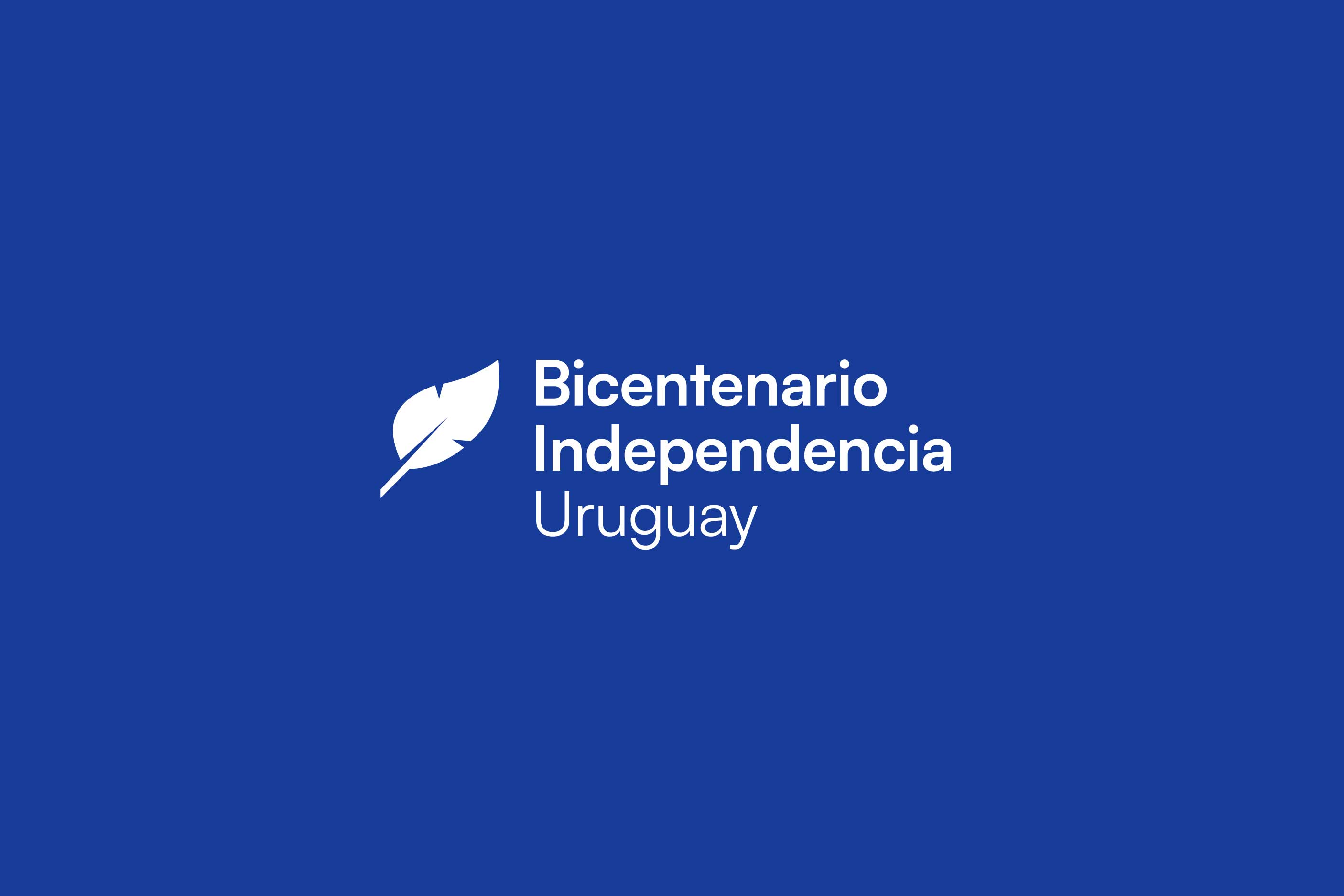 El logotipo se compone de un isotipo —una pluma— acompañado por el texto “Bicentenario Independencia Uruguay”. La pluma remite a la utilizada en la firma de la Declaratoria de la Independencia, tal como se representa en la obra Asamblea de la Florida del artista Eduardo Amézaga.