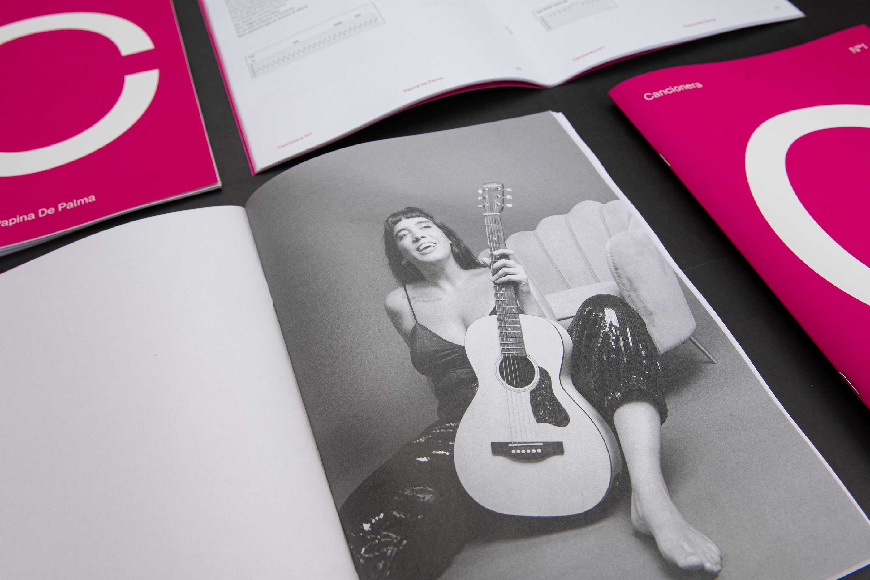 Diseño editorial de Cancionera Nº1 — Papina De Palma, primera publicación de una serie dedicada a cantautorxs uruguayxs contemporáneos.